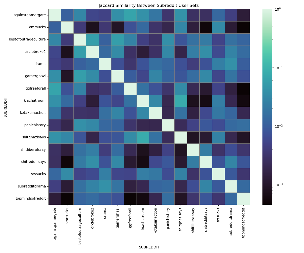 We chose to reduce our dataset to the subreddits that interact the most with either r/kotakuinaction (main pro-GamerGate subreddit) or r/gamerghazi (main counterpart of kotakuinaction) between 2014-07-01 and 2016-09-30.